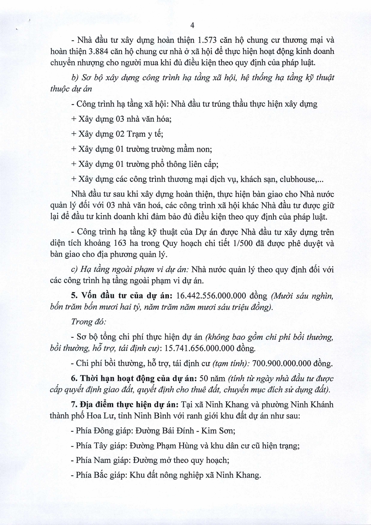 - Tên dự án: Khu đô thị sinh thái phía Đông thành phố Hoa Lư.