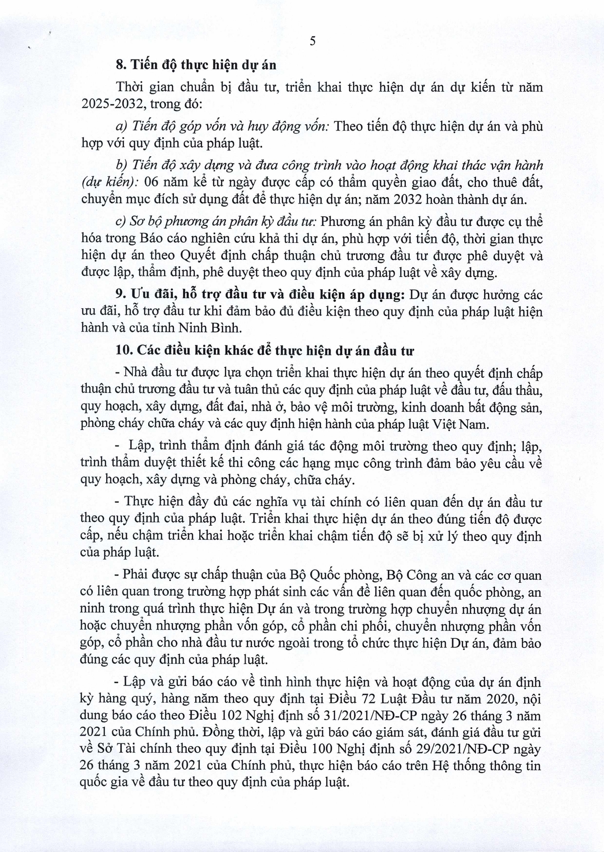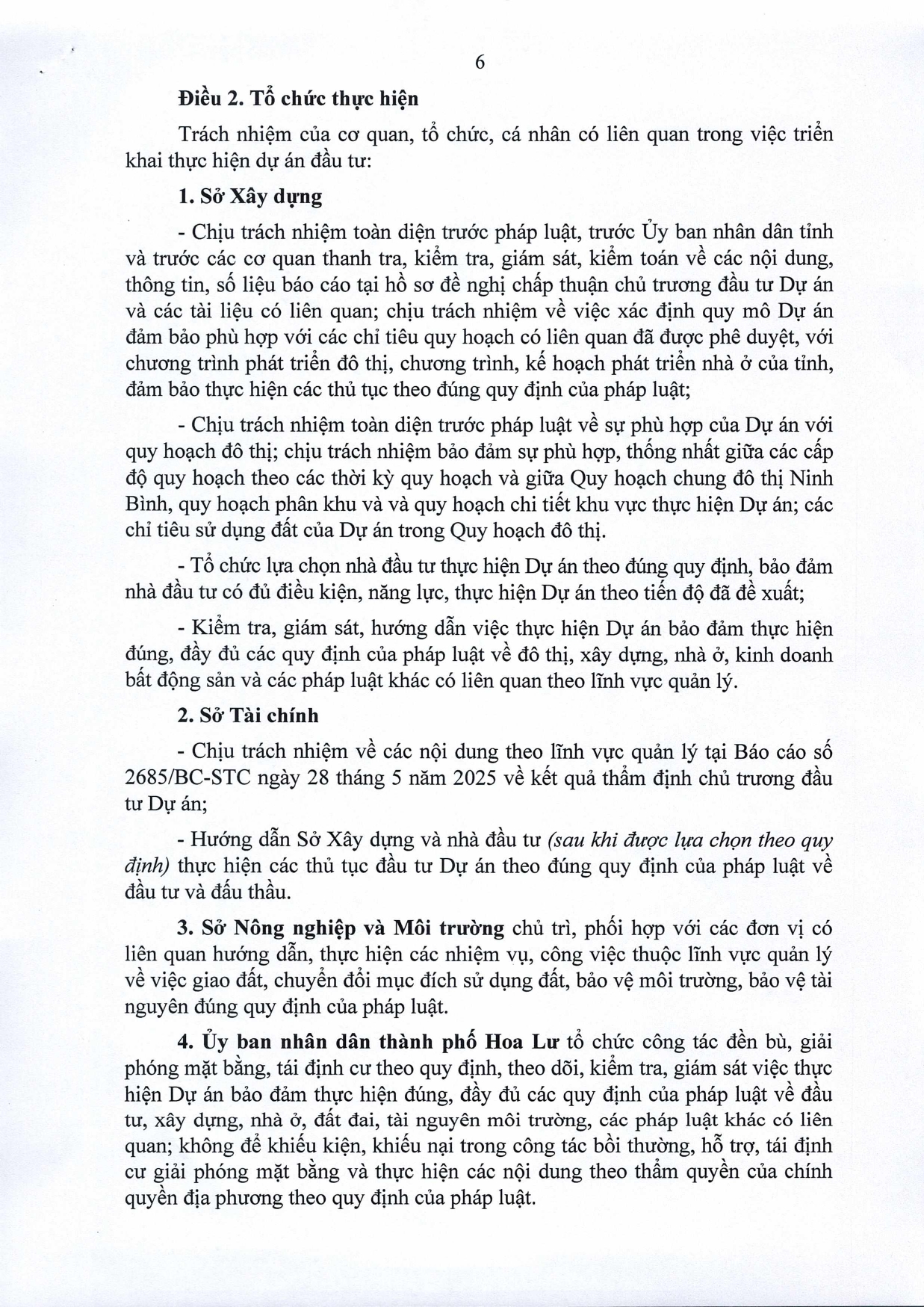 - UBND thành phố Hoa Lư: Thực hiện đền bù, giải phóng mặt bằng, tái định cư.