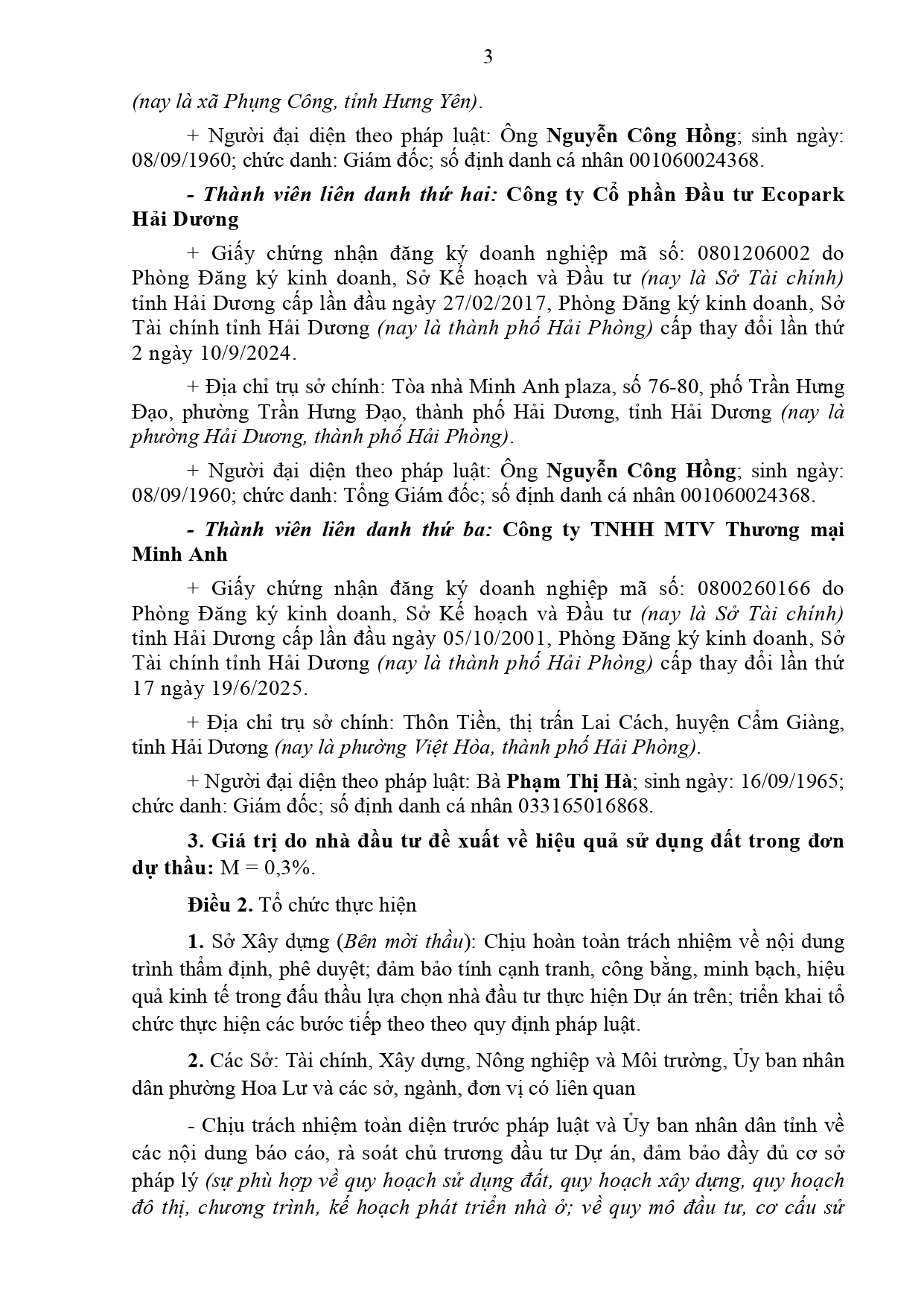 - Thành viên thứ hai: Công ty Cổ phần Đầu tư Ecopark Hải Dương.